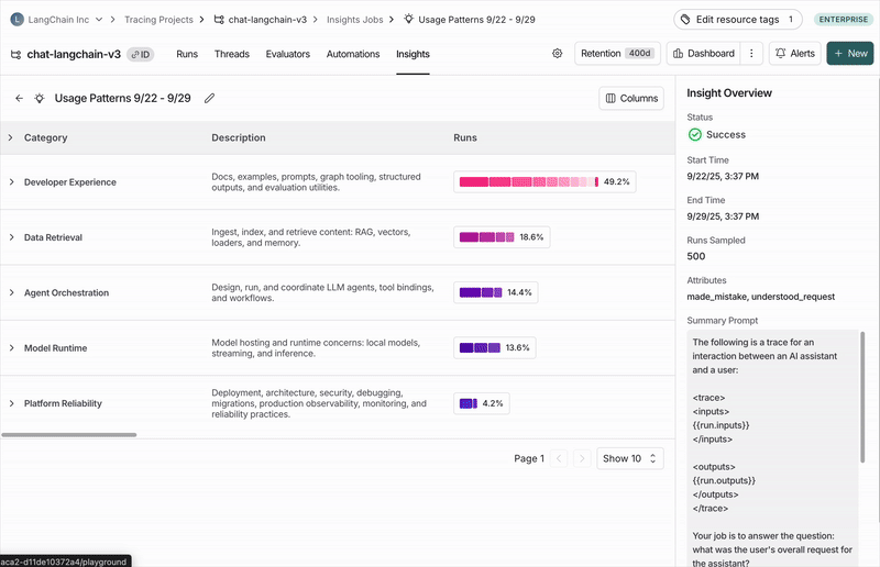 - Permissions to create rules in LangSmith (required to generate new Insights Reports)